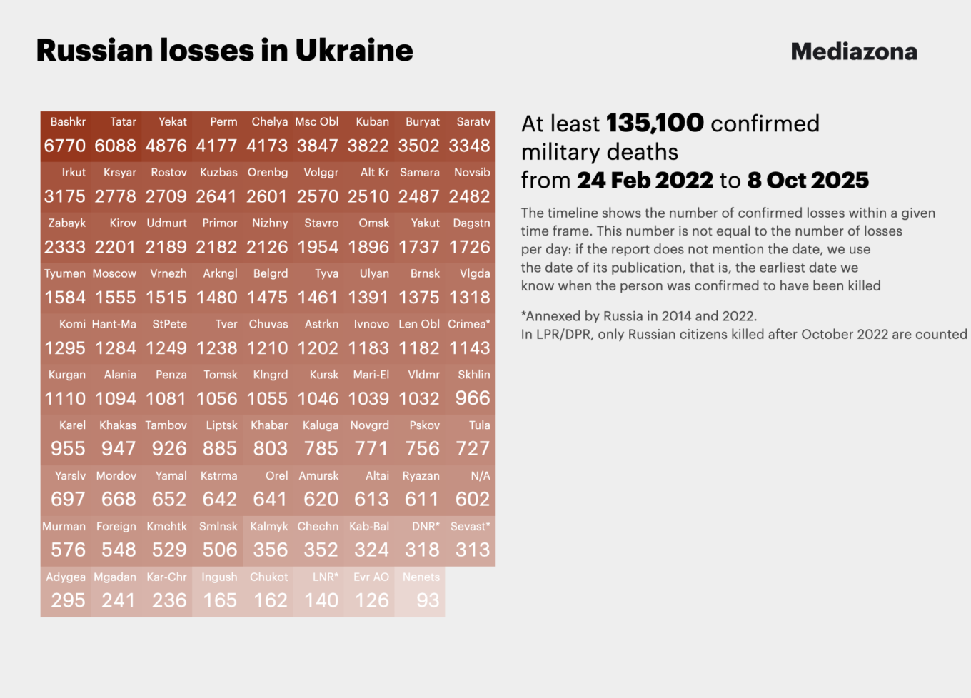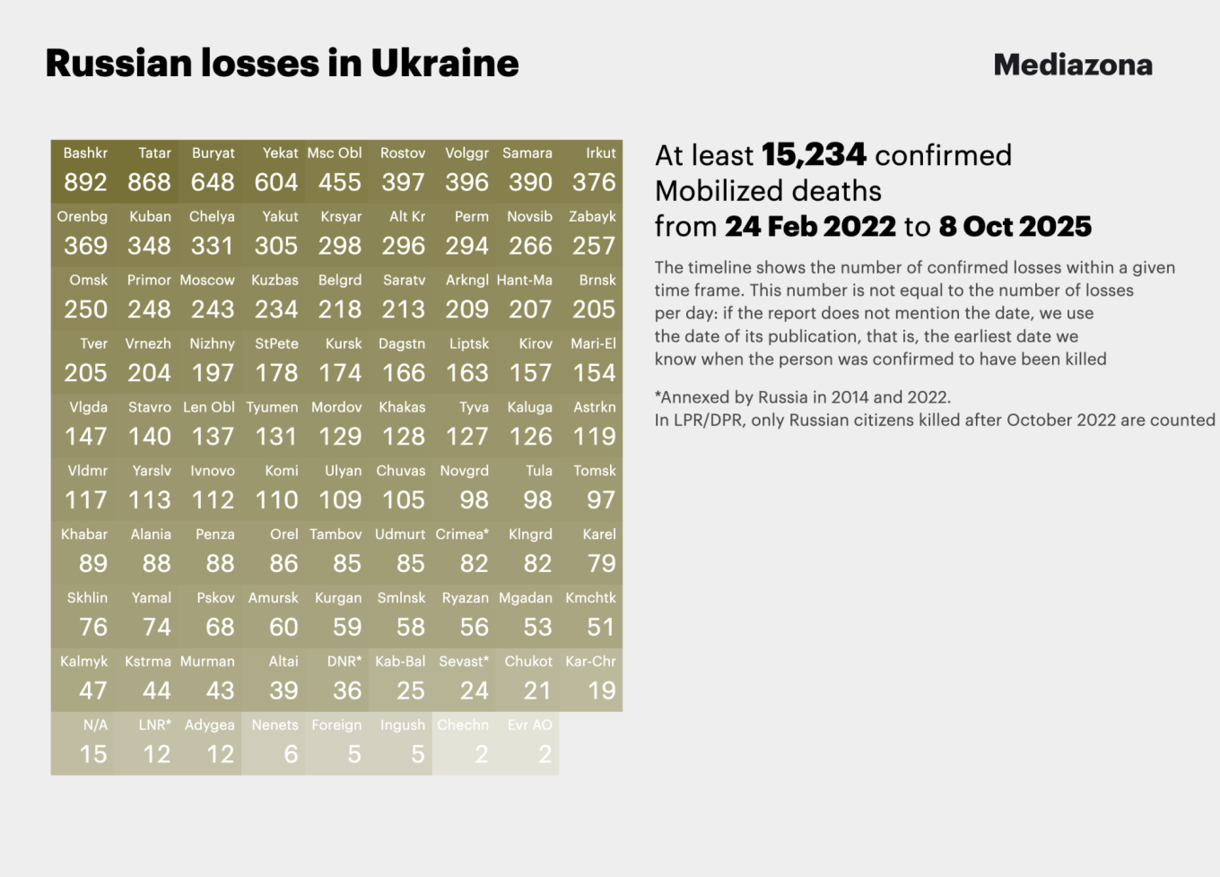 “It was done simply because regional budgets aren't bottomless,” explained Vyushkova, the leading researcher of regional and ethnic disparities in Russia’s war casualties.