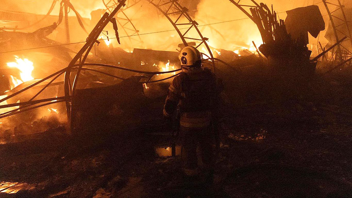 Emergency services said that one rescue worker was killed and five others were wounded putting out a fire during a repeat Russian attack on the village of Zelenyi Hai in the eastern Kharkiv region.