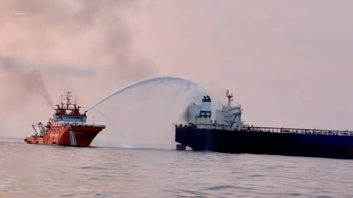 The directorate later said the Virat had reported "being hit approximately 35 nautical miles offshore," adding that all 20 crew were unharmed but there was "heavy smoke detected in the engine room," although those on board had not requested evacuation.