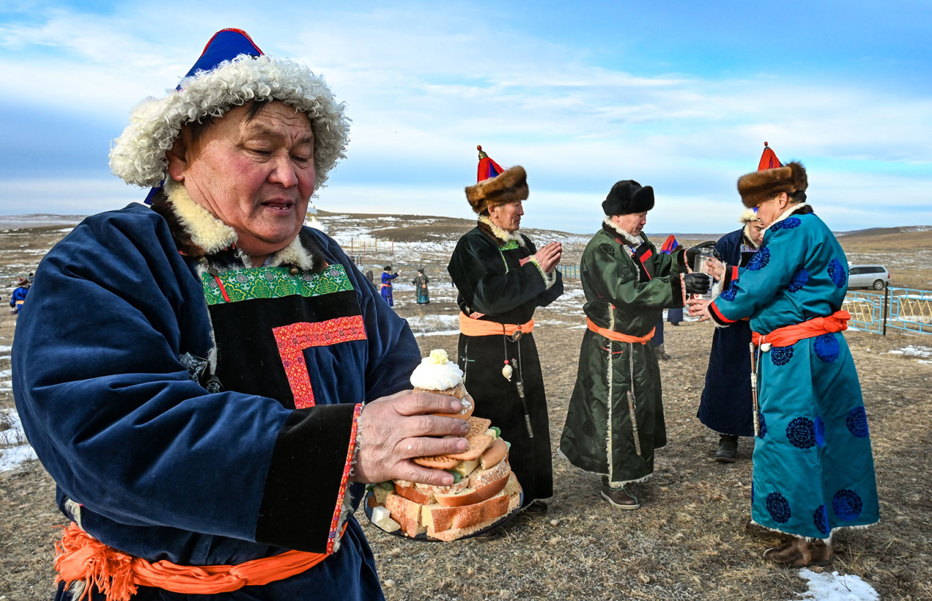 Buryats mark Sagaalgan by exchanging gifts and feasting on an abundance of traditional dishes, including boiled lamb's head and buuz, or steamed meat dumplings.