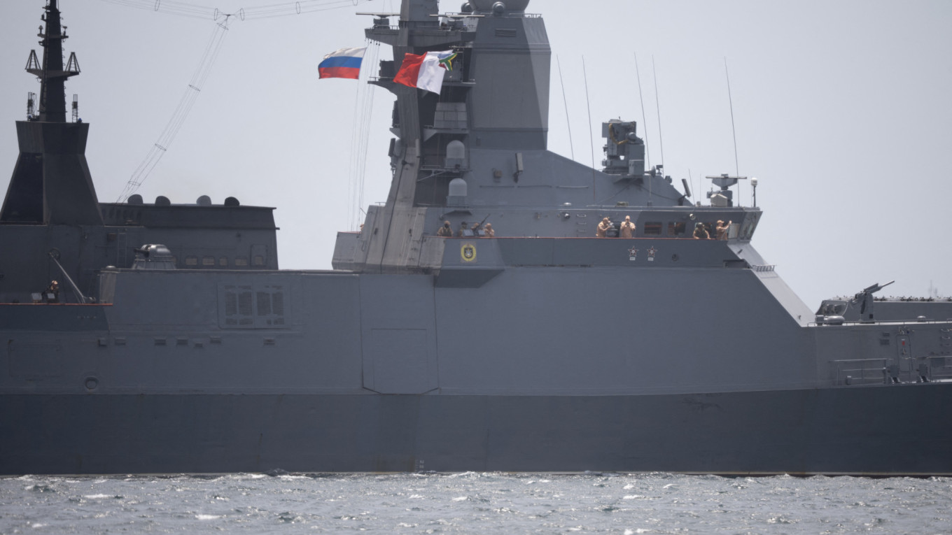 A handful of Ukrainians protested as the Russian vessel arrived, criticizing South Africa — which claims to be non-aligned in Russia's war on Ukraine — for hosting the Russian Navy.