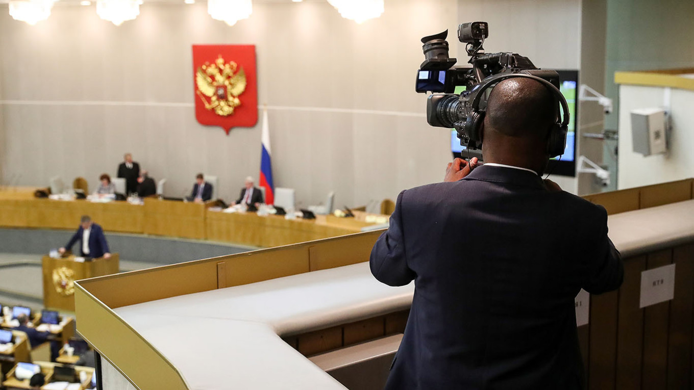 The Vedomosti business newspaper, citing four anonymous sources within the State Duma, reported that only camera operators were allowed on Wednesday to enter a balcony area where reporters usually take photos of parliamentary sessions.