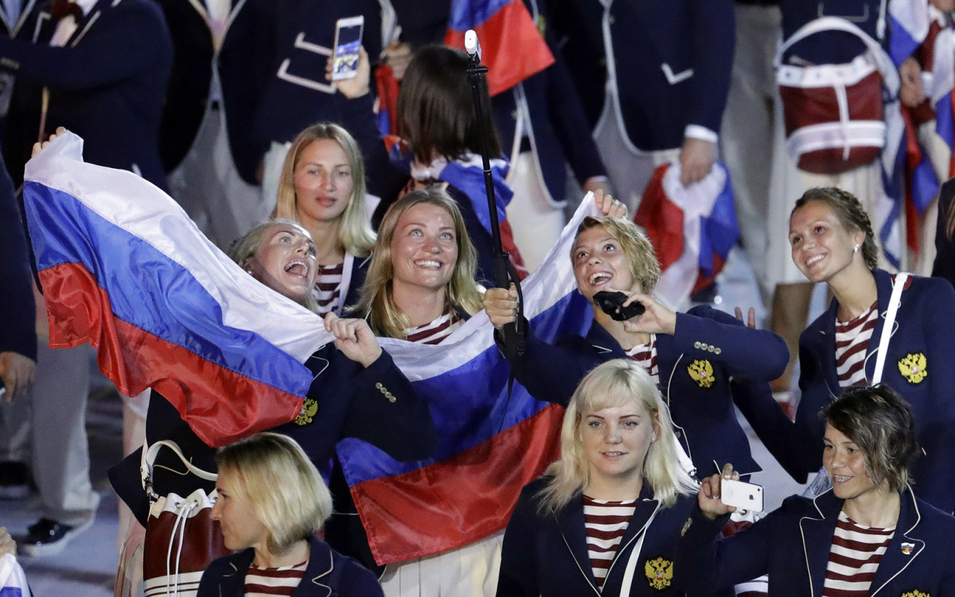 Team Russia arrives at the opening ceremony for the 2016 Summer Olympics in Rio de Janeiro on Aug. 5.