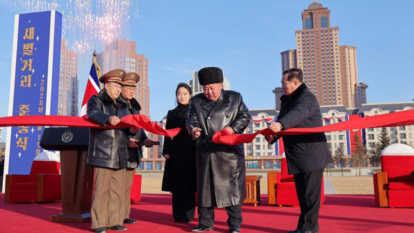 Photos released by KCNA showed Kim touring the new apartments alongside his teenage daughter Ju Ae, who South Korea's spy agency claims has been "designated as a successor" to her father.