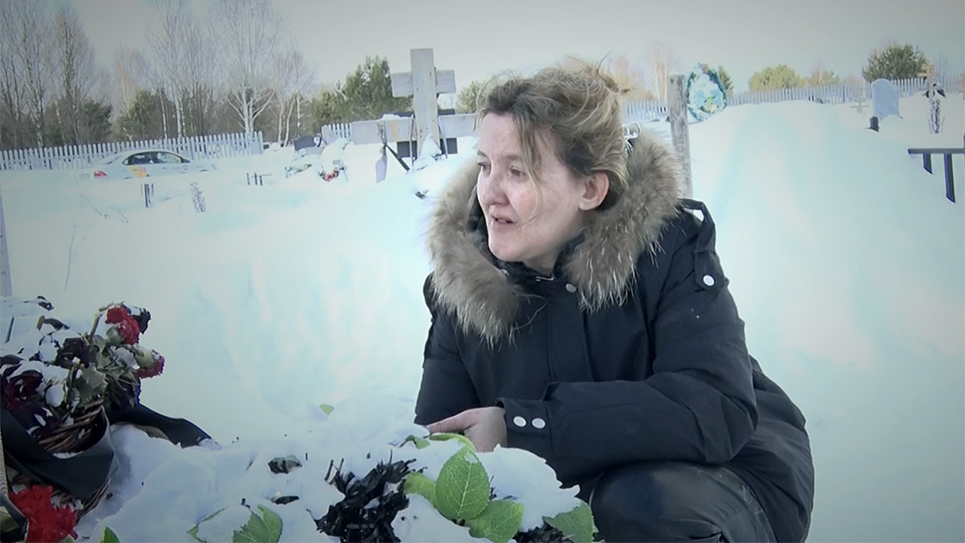 “I come here often, but I try not to run into Roman’s parents,” Karina Skrylnikova says on camera.