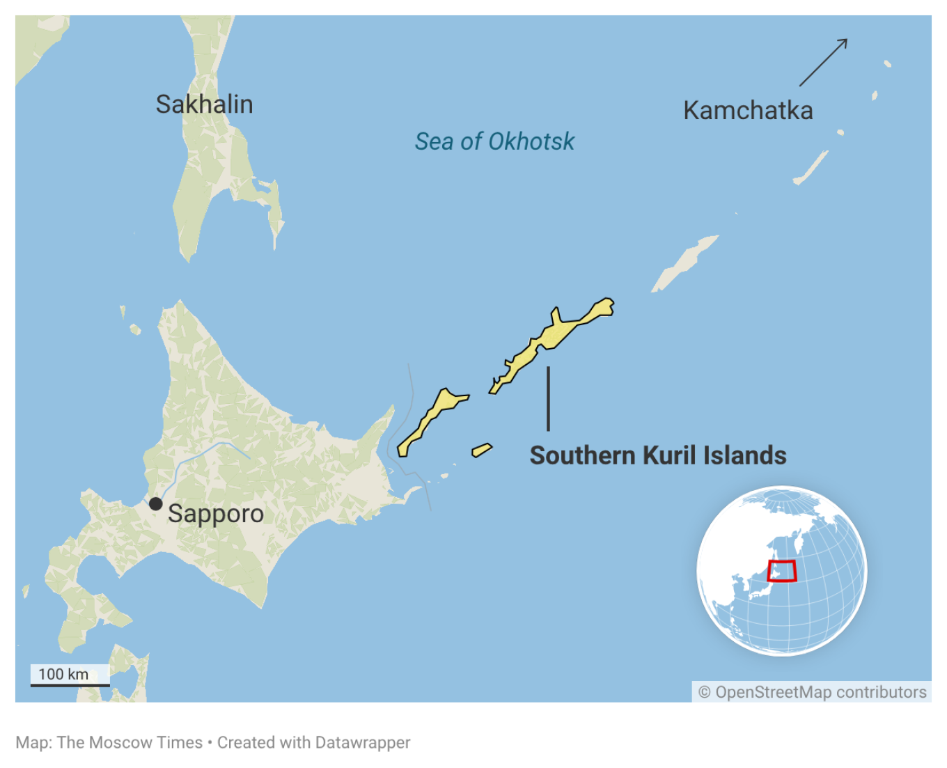 The “Northern Territories,” as they are known in Japan, are what Russians call the Kuril Islands. Or, to be exact, the four southernmost islands in the volcanic archipelago that stretches roughly 1,300 kilometers (810 miles) between Japan’s northern Hokkaido prefecture and Russia’s Kamchatka Peninsula.