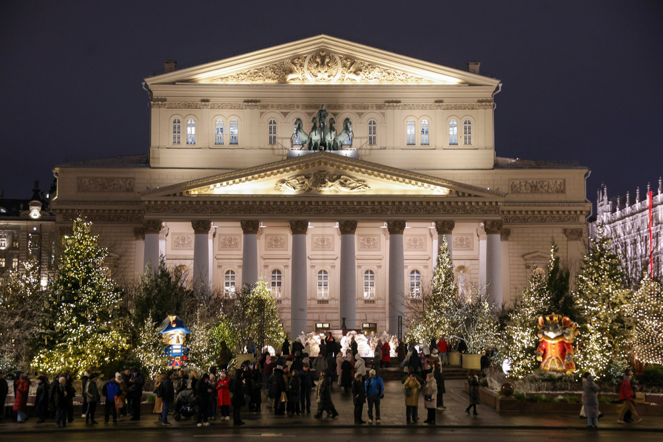 New Year's decorations at the Bolshoi Theatre in 2025.