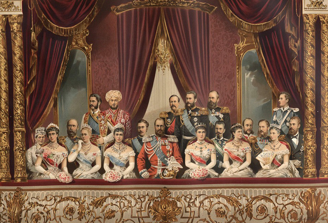 A ceremonial performance at the Bolshoi Theatre marking the coronation of Tsar Alexander III and Empress Maria Feodorovna in 1883.