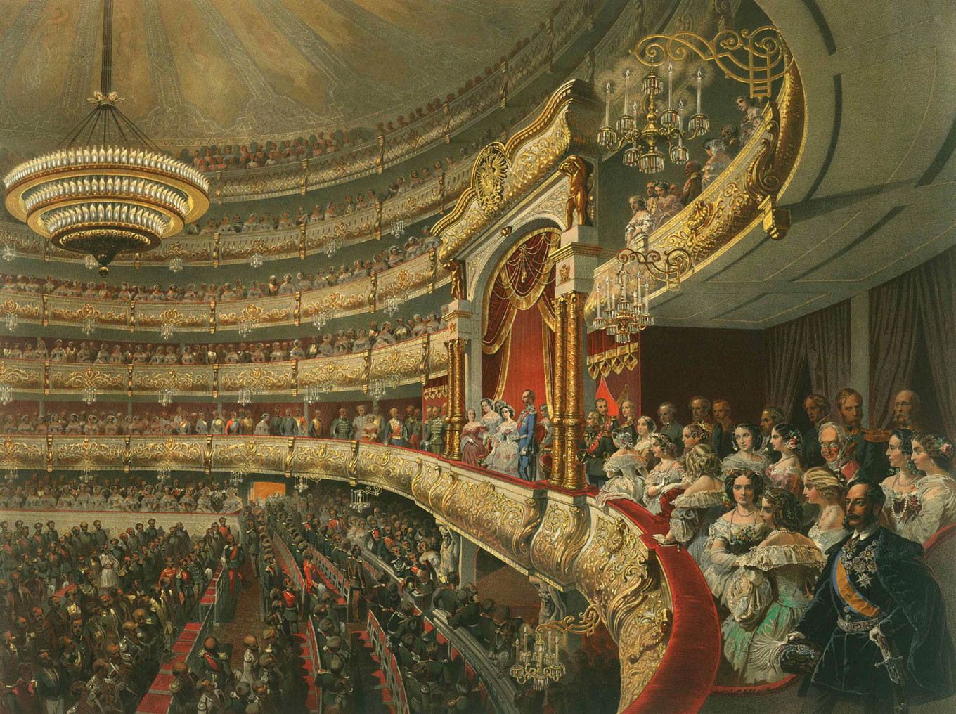 A performance at the Bolshoi Theatre for the coronation of Tsar Alexander II in 1856.
