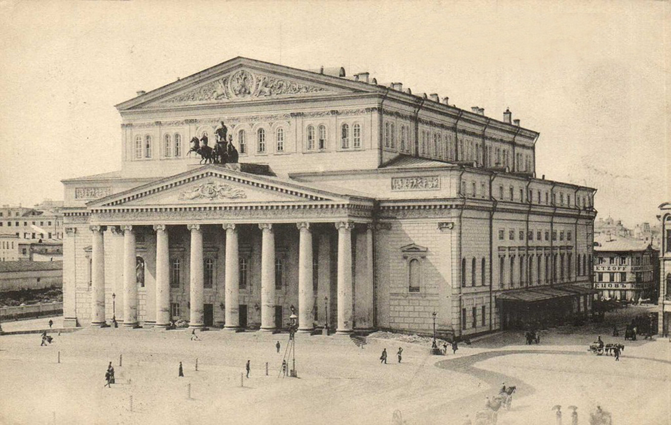 A postcard with an image of the Bolshoi Theatre in 1917.