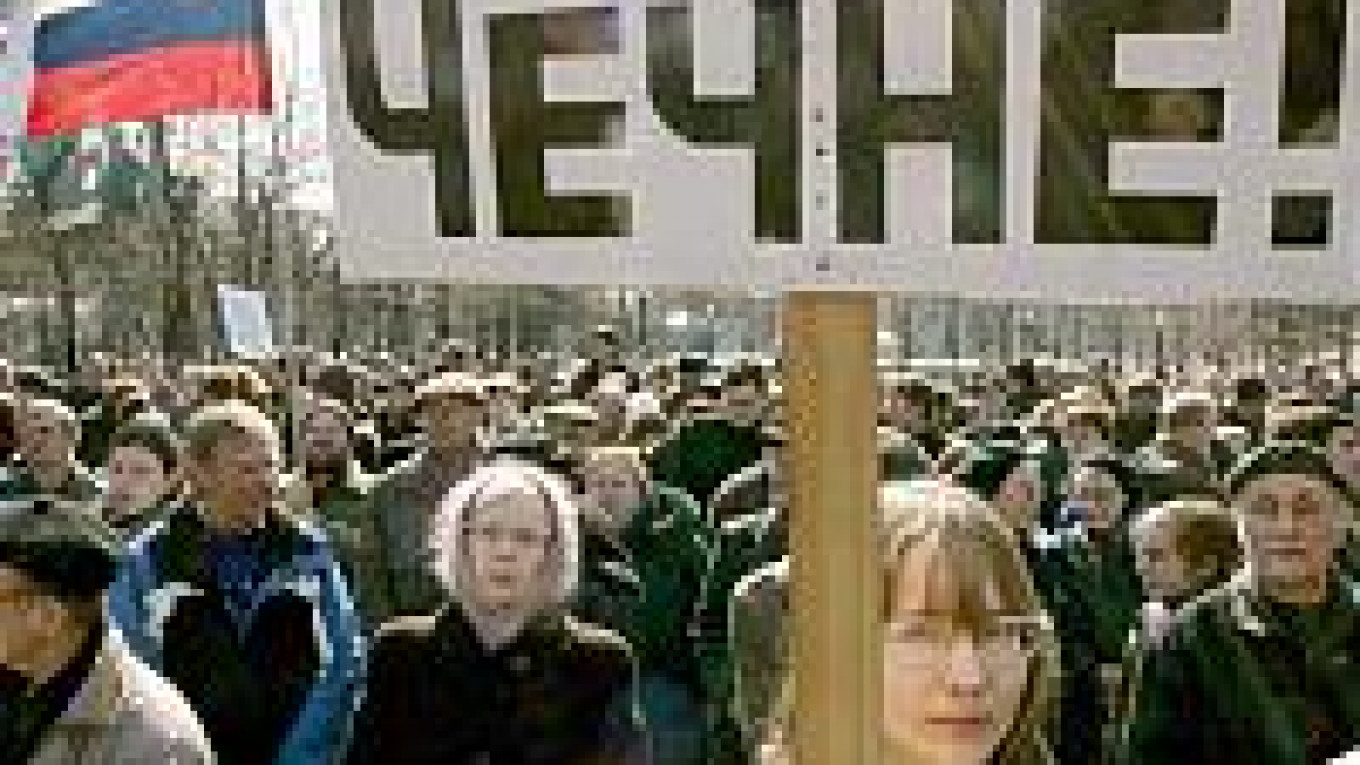 About 1,500 people gathered on Pushkin Square with signs reading "Stop the War in Chechnya" and "Federals, Go Home."