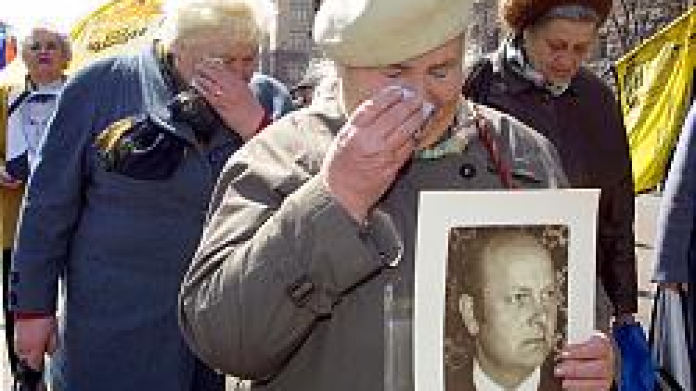 Many carried photographs of loved ones killed in the accident and banners with slogans such as "Chernobyl Is Closed. Are the Problems of Chernobyl Forgotten?"