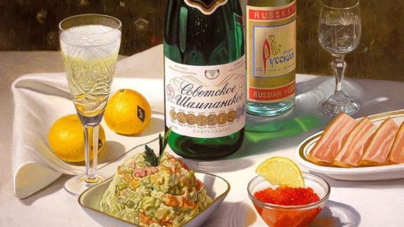 2. On New Year's, drink champagne and cognac until 6 a.m., eat "herring in a fur coat" and olivier salad and then party in the apartment for three more days.