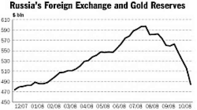 International ratings agencies tie Russia's sovereign rating closely to the size of its foreign exchange reserves. So far, the reserves have fallen by more than $116 billion since reaching a peak of $600 billion in August. Fitch Ratings estimates that they will lose a total of $160 billion, or a quarter of their value, by the end of 2009.