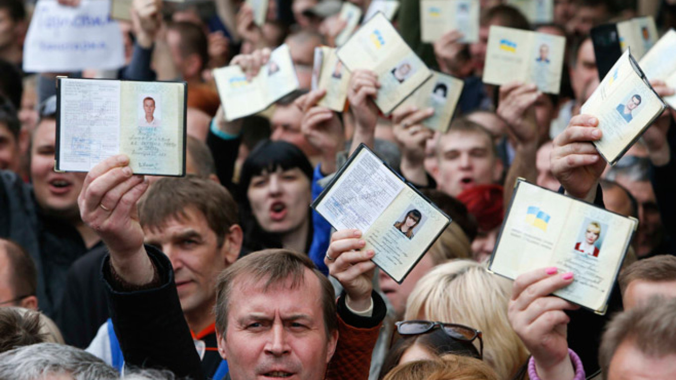 "Documents are checked before anyone can even get anywhere near the polls," said Anatoly Sorokin, a volunteer. "We have not seen any Russian passports or anyone trying to cause trouble."