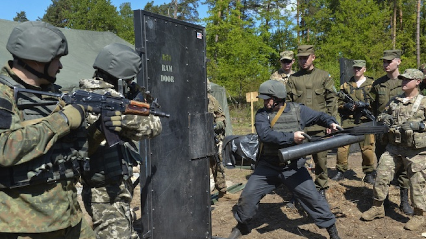 YAVORIV — Tense Ukrainian soldiers with assault rifles creep stealthily around mock houses before bursting in to clear out gunmen, while others practice setting ambushes or infantry assaults, all under the watchful eyes of U.S. Army trainers.
