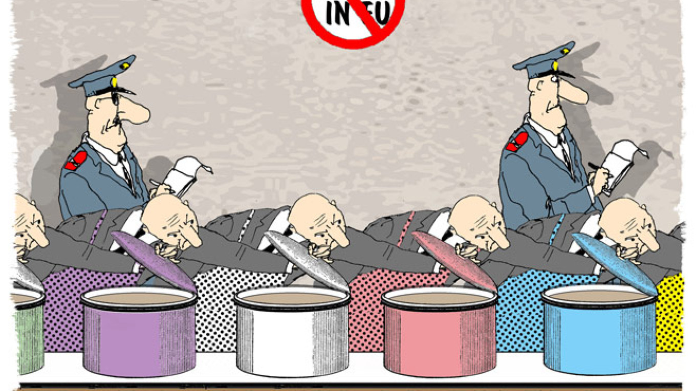 The hotline service is technically for reporting the commercial sale of prohibited food, and the ban isn't supposed to apply to foreign products brought into Russia for personal use. Still, packs of jamon and jars of caviar have reportedly been confiscated at Moscow's airports, and at least one keen-nosed (and, reportedly, drunk) citizen of Vladivostok already called the police on his neighbors after smelling the aroma of someone cooking an illegal Polish goose. It's still legal to consume the banned foreign foodstuffs, but for how long?