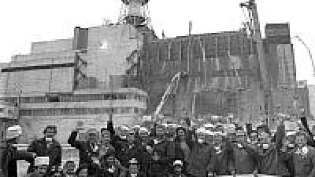 ![]() AP Workers who covered the ruined fourth reactor pose in 1986 with a poster that reads, "We Will Fulfill the Government's order!" Many later died of radiation poisoning. | |