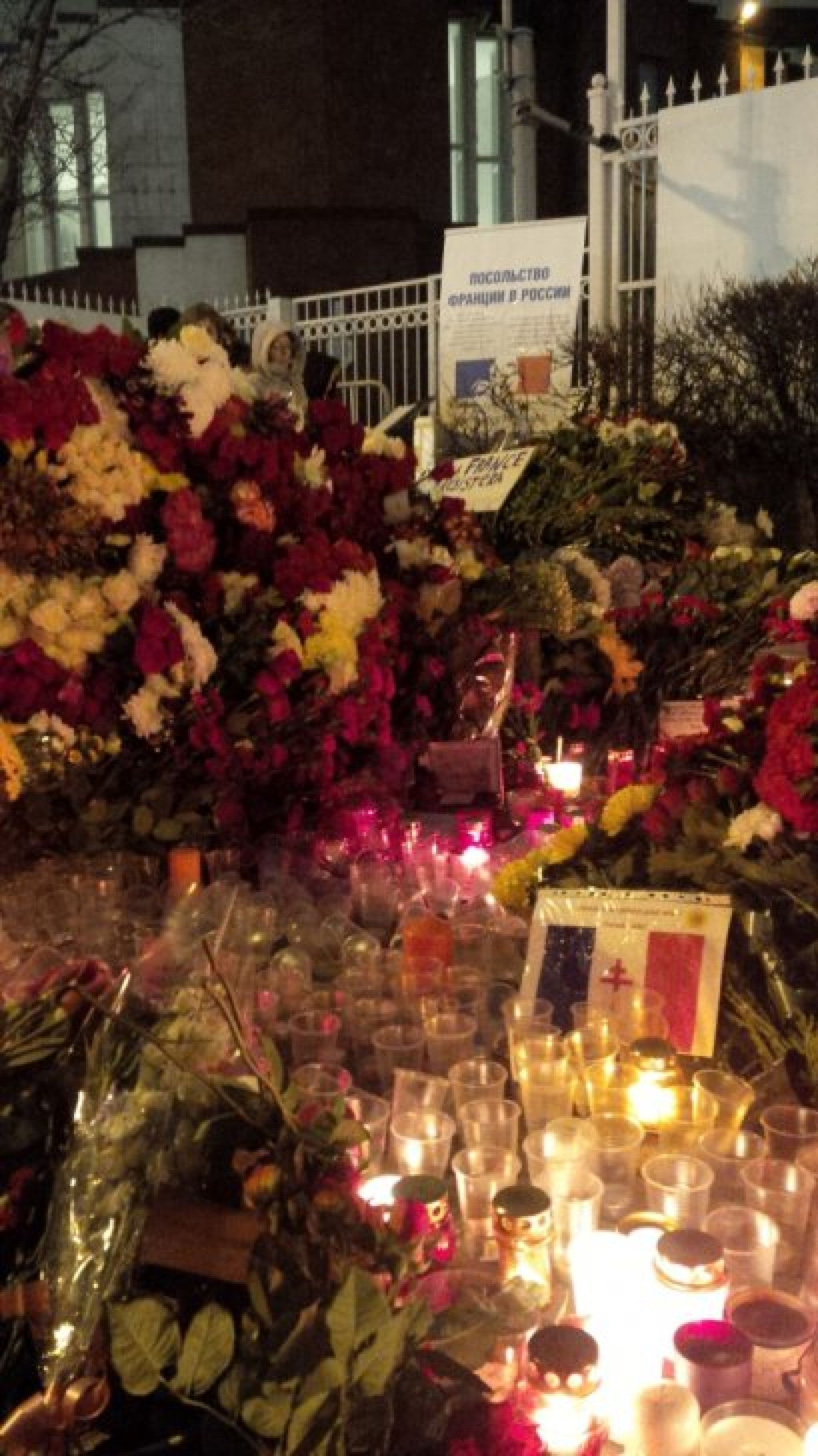 Memorial to Paris Terror Victims at French Embassy in Moscow