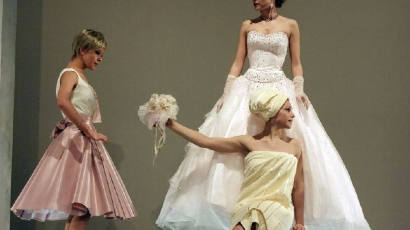 The attractive large set by Zinovy Margolin utilizes lots of open space and transforms into several configurations thanks to sliding panels that imply an enclosed platform at a train station or windowed walls on a large patio. The costumes by Viktoria Sevryukova are rich, varied and occasionally dashed with humor through color. A live musical ensemble, Group W, often accompanies the action, performing on raised platforms at the back of the stage.