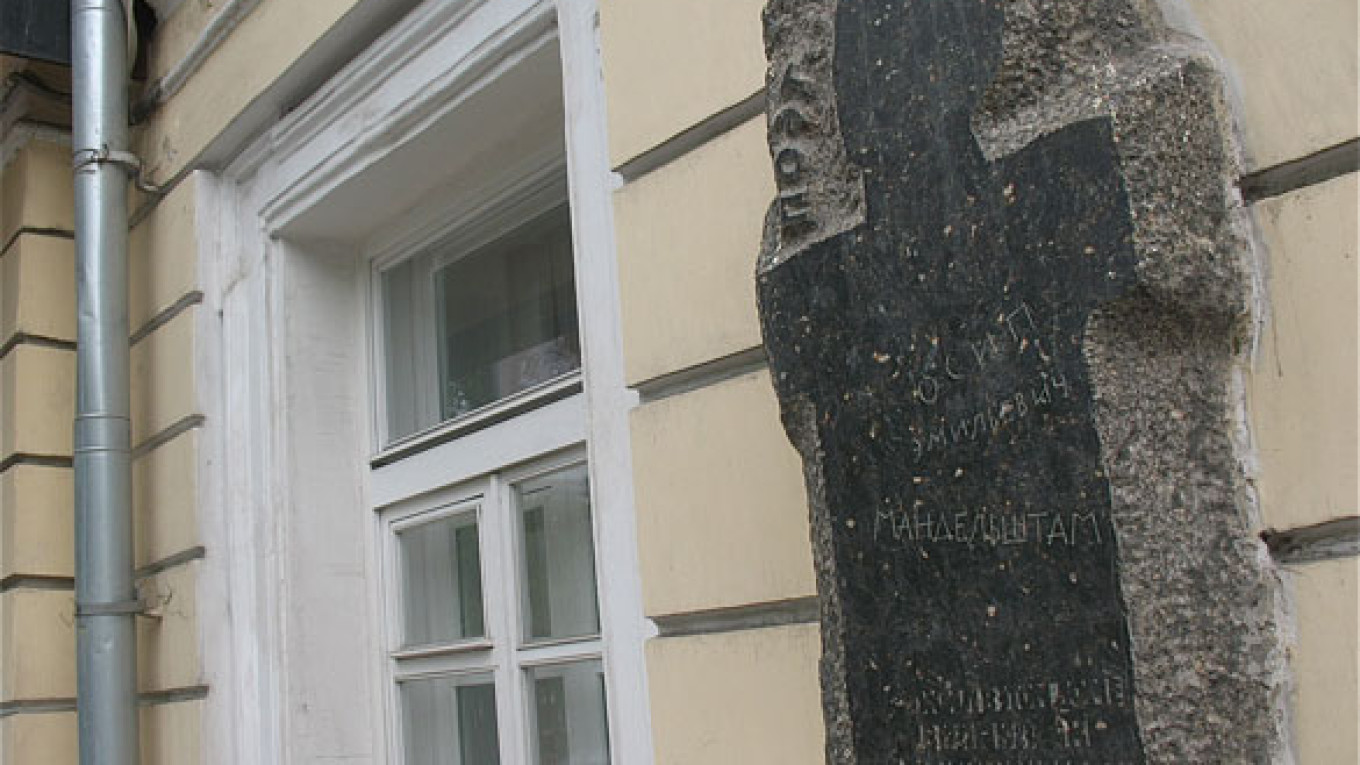 Mandelstam lived at 23 Tverskoi Bulvar twice, once from 1922 to 1923, just after returning to Russia from Europe, and again from 1932 to 1933, just before his first arrest. The plaque honoring his memory at this address is a little odd, for its shape seems to suggest a Christian cross, while Mandelstam was of Jewish heritage. Still, the rough-hewn simplicity of the monument is quite effective.