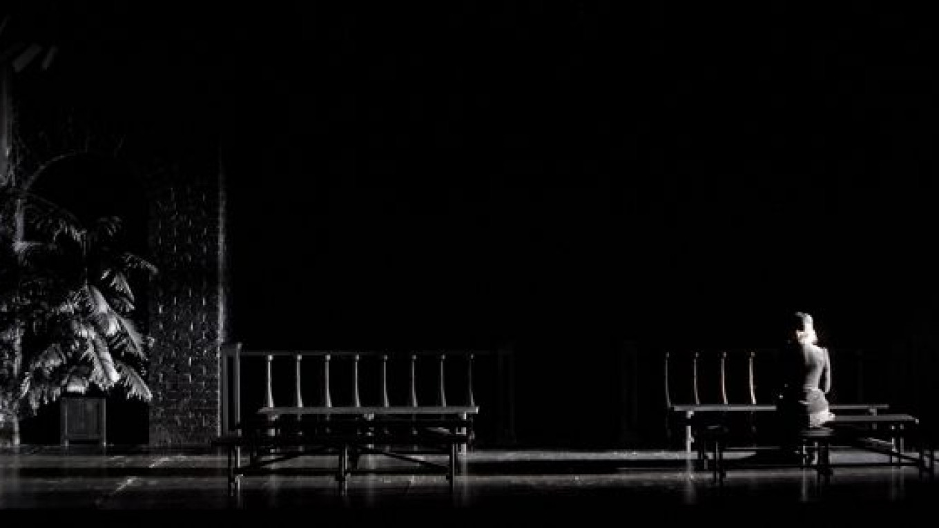 Designer Alexander Borovsky did not give the actors much room to move. The performance space consists of several rows of benches before a courthouse railing. All is in various shades of black, including the space beyond the railing, the costumes and the benches themselves. It is one of the most unchanging and claustrophobic theatrical spaces imaginable.