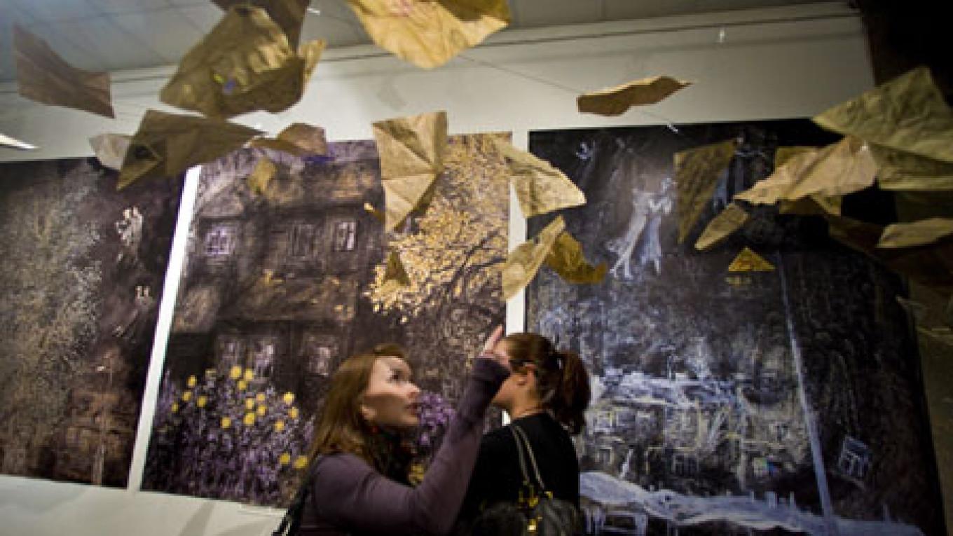 People admiring the interactive nature of the new Yury Norshstein exhibit at Gallery Na Solyanke. Vladimir Filonov