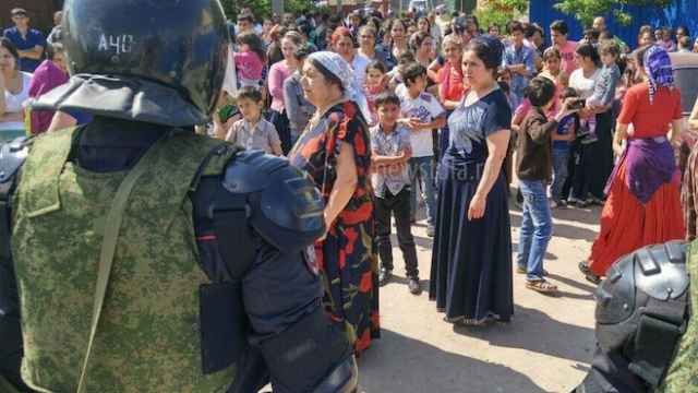 Riot police were called to break up an unsanctioned protest in a village in Russia's Tula region, a local news website reported Monday.